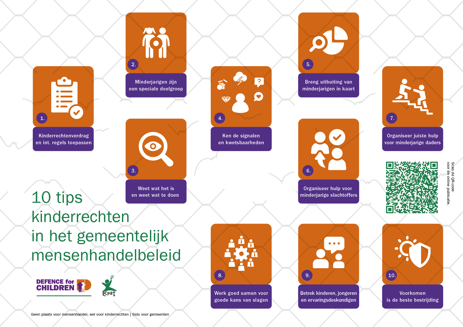 Deze gids is bedoeld voor gemeenten. Hopelijk stimuleert het u en uw gemeente om in uw mensenhandelbeleid en -aanpak bijzondere aandacht te geven aan kinderen en jongeren die slachtoffer zijn van uitbuitingspraktijken. Oftewel mensenhandel met de focus op seksuele uitbuiting van minderjarigen. We beschrijven zo kort en krachtig mogelijk wat u daaraan kunt doen en geven tien tips. Er is nog veel meer over te zeggen en te schrijven, maar we hopen dat dit u alvast aanzet tot actie. Wilt u advies op maat? Neem dan contact met ons op via